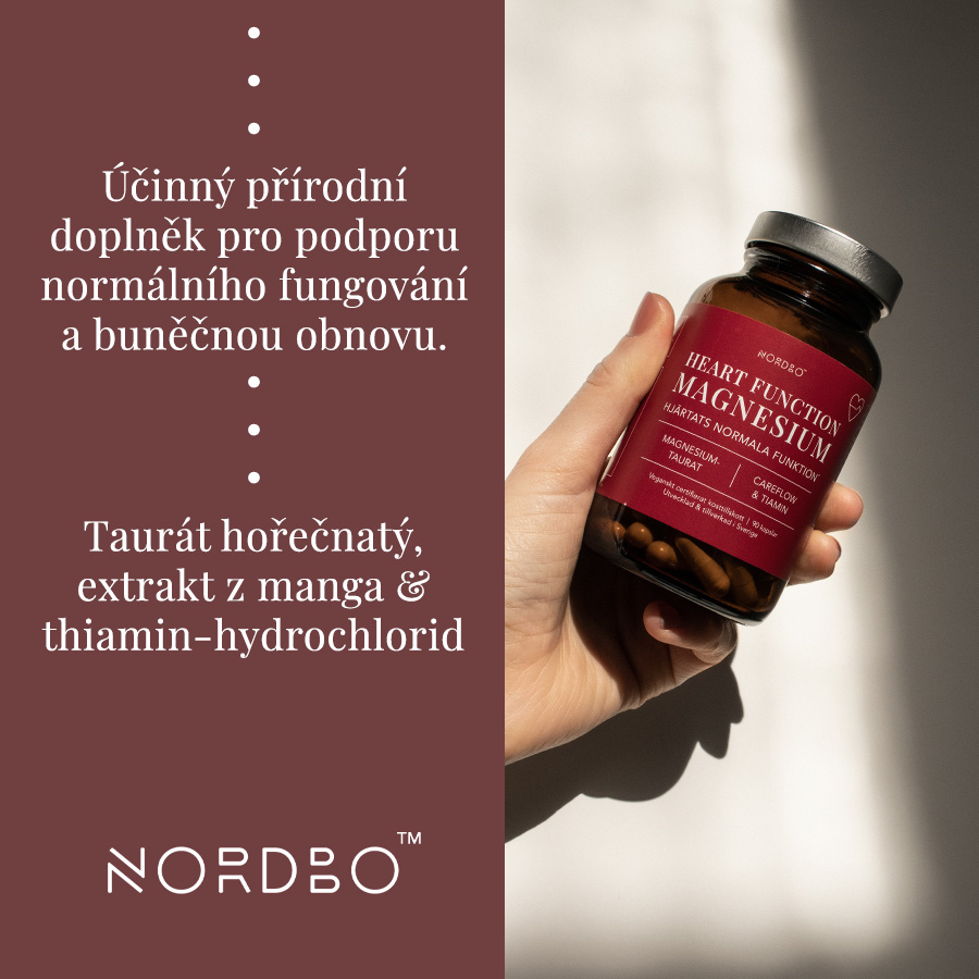 Magnesium Heart Function je účinný přírodní doplněk pro podporu normálního fungování a buněčnou obnovu. Obsahuje organickou formu hořčíku - taurát hořečnatý, kde je hořčík v chelátové vazbě s taurinem, nejzastoupenější aminokyselinou v srdci. Účinek dále doplňuje extrakt z manga, který byl testován v klinické studii zaměřené na mikrocirkulaci, a thiamin, koenzym, který si tělo neumí vytvořit samo a který se nachází v srdci i v mozku.